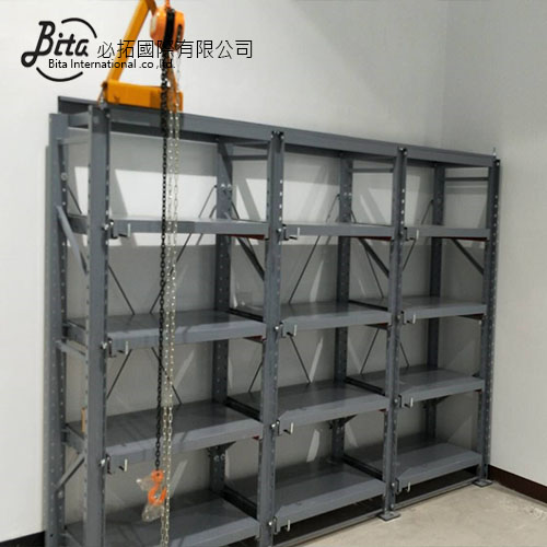 專門為模具設計之貨架,具有極佳的荷重能力,並且使用拖拉抽屜進行存放,有效節省時間與增加工作效率,另有安全裝置增加人員使用安全。